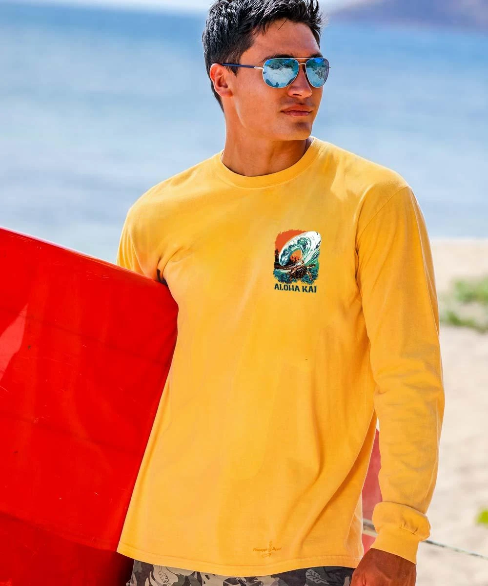 Aloha Kai Wave – Pineapple Dyed Long Sleeve Crewneck T-Shirt