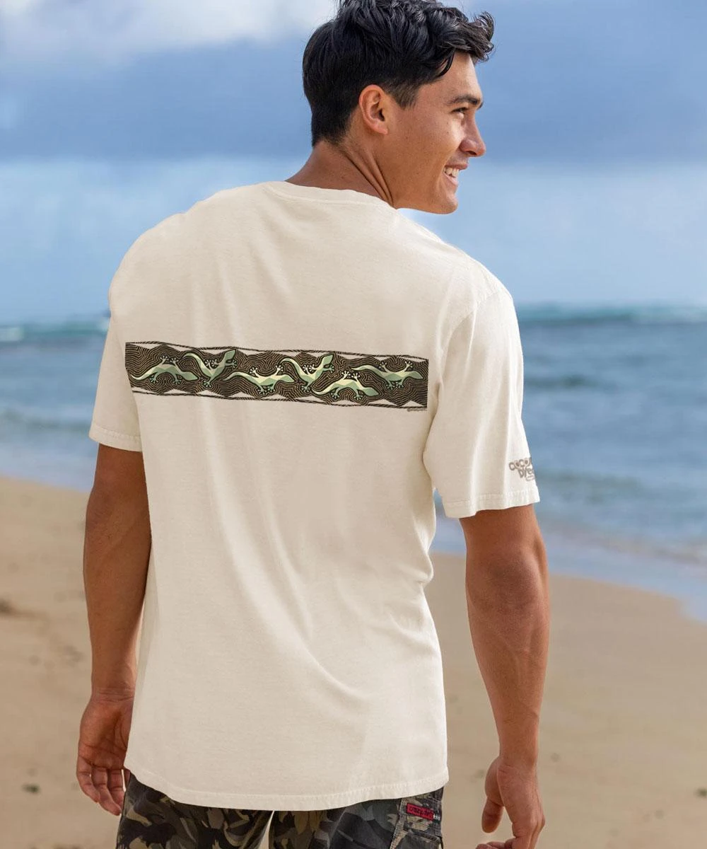 Nature meets nuttiness in this quirky linear design featuring the dauntless gecko. Though these creatures are small they have big personalities, and they bring a sense of emotion and motion to this clever artwork. Made using our exclusive specialty dyeing process that uses real coconut and featuring 100% combed ring-spun cotton, this t-shirt has 50+ SPF protection to keep you feeling cool, calm and protected all year long. We only use environmentally friendly water-based inks that penetrate the material’s fiber resulting in more vibrant colors, softer feel and artwork that doesn’t crack or peel. Plus, it is proudly printed in the United States for quality you can see and designs that stand the test of time.