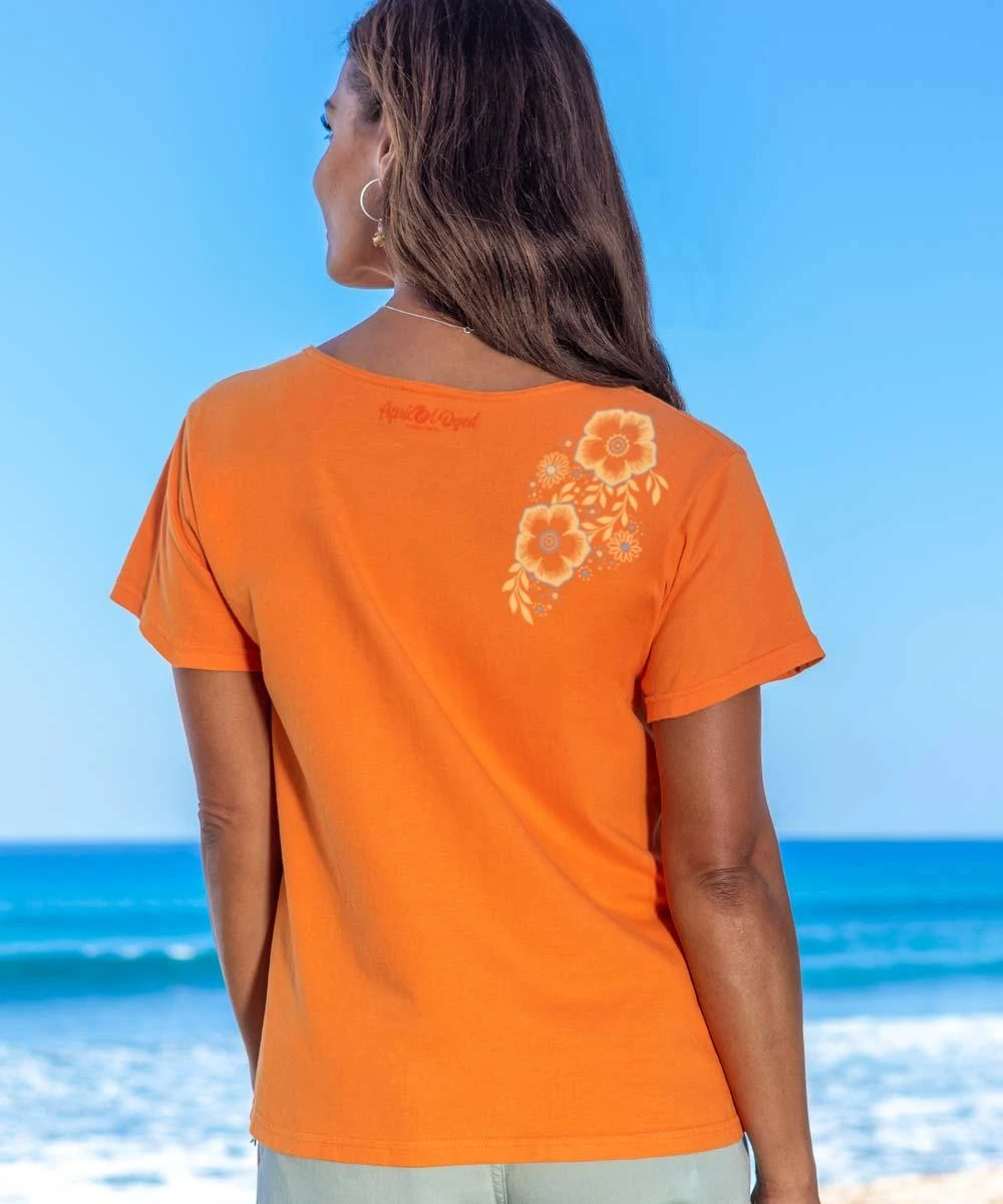 Symmetrical blooms fall down this top to add a pick me up to this apricot dyed top. Unlike a real henna design, this one will last so wear it like a badge of eternal beauty. Made from 100% cotton that is ring-spun, then combed to make it luxuriously soft, this tee also features a scoop neck with a relaxed cut to be both cute and comfortable. The unique color comes from our apricot specialty dyeing process. We only use environmentally friendly water-based inks that penetrate the material’s fiber resulting in more vibrant colors, softer feel and artwork that doesn’t crack or peel. Plus, it is proudly printed in the United States for quality you can see and designs that stand the test of time.