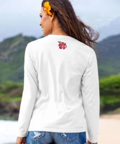 In Hawaiian, haku means to braid a lei to wear on your head and this design looks exactly like we wove these flowers together. Inspired by the special varieties cultivated at Jim Little’s plumeria farm on Oahu, this tee keeps alive the island tradition of lei making with plumeria that are always in bloom. Made from 100% cotton that is ring-spun then combed to make it luxuriously soft, this tee also features a scoop neck and relaxed cut to be both cute and comfortable. We only use environmentally friendly water-based inks that penetrate the material’s fiber resulting in more vibrant colors, softer feel and artwork that doesn’t crack or peel. Plus, it is proudly printed in the United States for quality you can see and designs that stand the test of time.